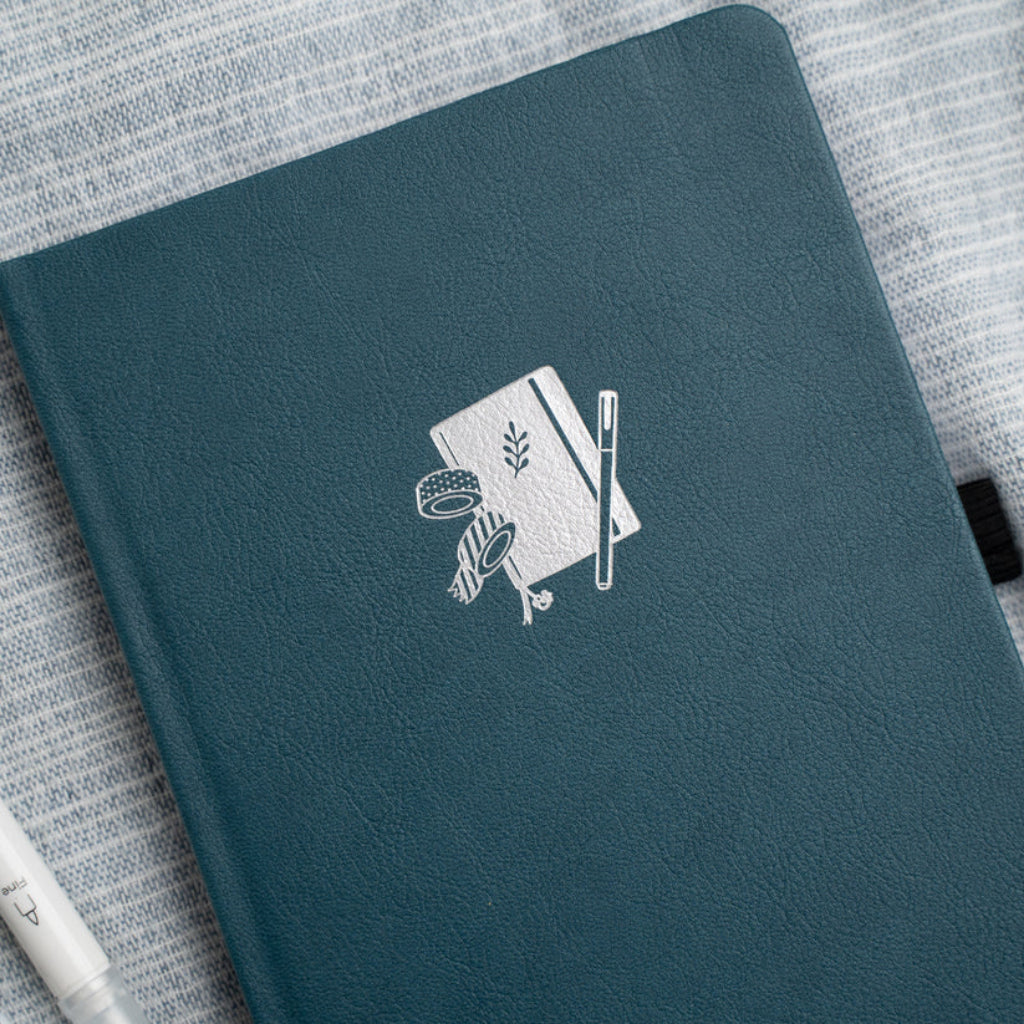 Celebrate your love for journaling with a notebook made just for the true Archer & Olive enthusiast. TheĀ Superfan NotebookĀ features a deep teal vegan leather cover adorned with a shiny silver-foil illustration of a journal, washi, and pen. A charming nod to all the supplies we can’t get enough of. Thoughtfully designed and crafted with our signature ultra-thick paper, this notebook is ready for every idea, doodle, spread, or memory you dream up.