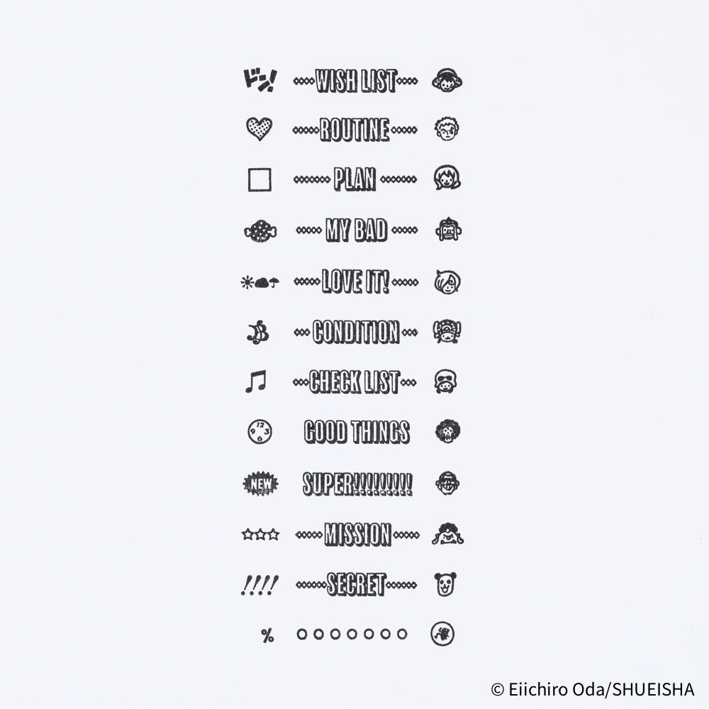 A rotating stamp where you manually turn the gears on the stamp face, allowing you to freely combine and use various designs. A collaboration design with ONE PIECE magazine. The stamp face is divided into three bands, letting you mix and match One Piece illustrations and text. It stamps clearly with a light touch.