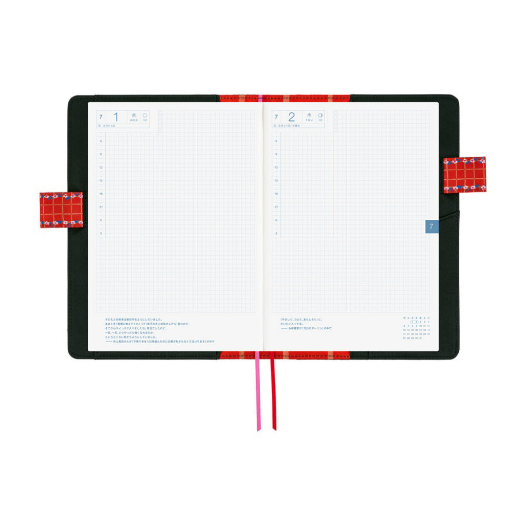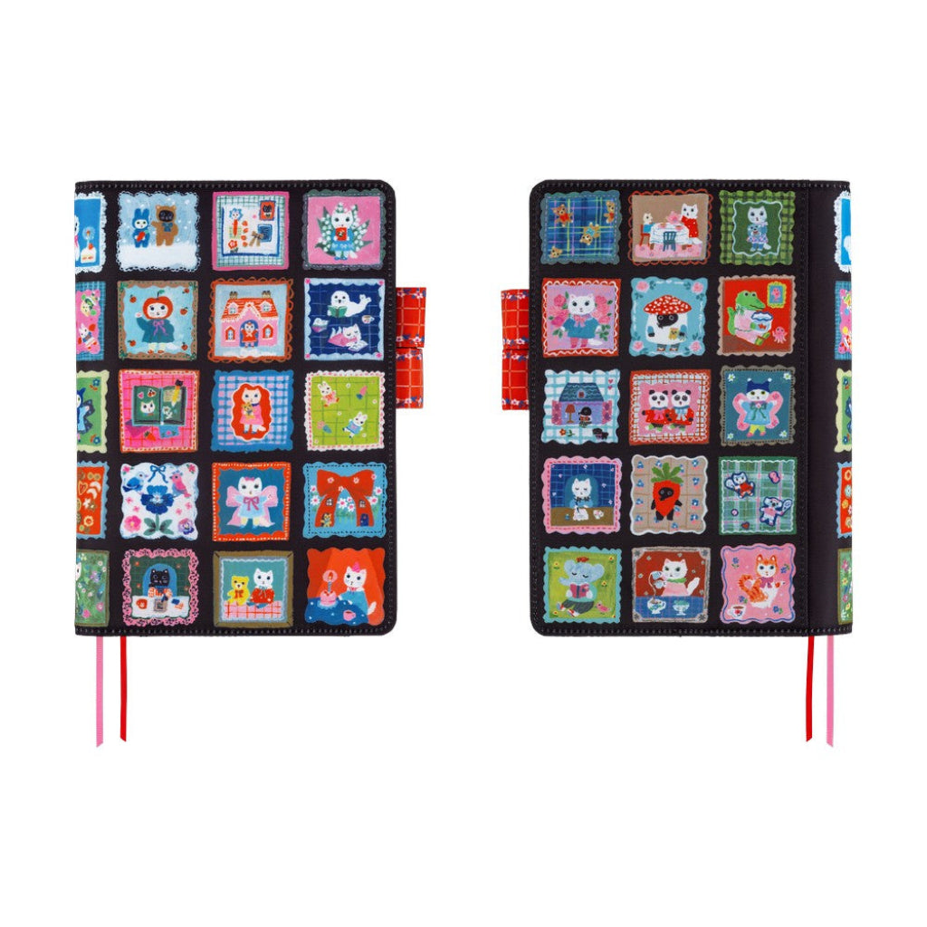 Printed with Yumi Kitagishi’s artwork depicting the fun everyday life of a white cat. There is a big pocket on the back of the cover with a different illustration inside it. Why not have a peek? It has "butterfly stopper" pen holders, which also function as a clasp to keep the cover shut.