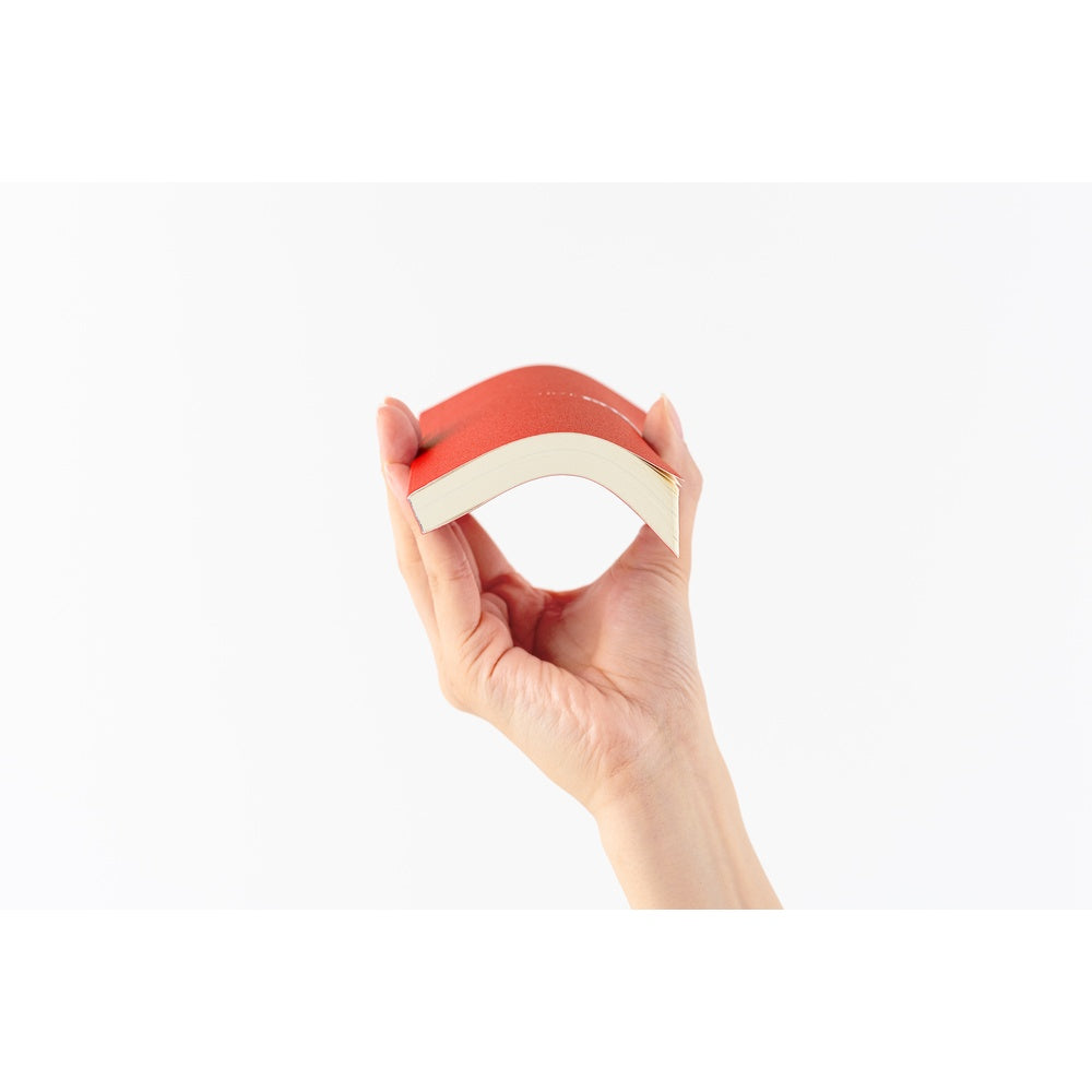 A tomato red that draws the eye in an instant, making you feel revitalized. The year 2026 and the Mega logo are printed on the cover in puffy letters. Instead of attached bookmarks, the book comes with reusable clear sticky notes. The softcover book is easy to squeeze in your hand.