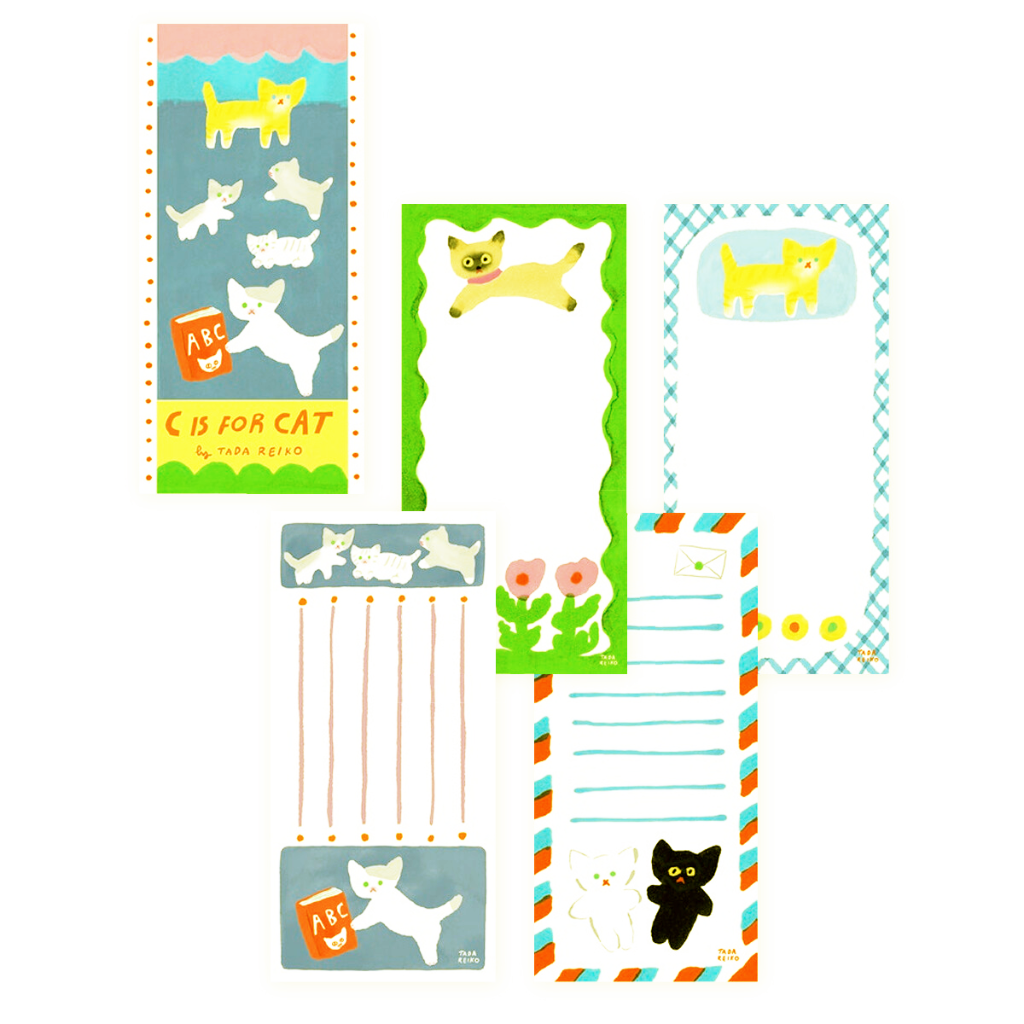 The Cozyca Products Mino Paper Memo Pad features playful cat illustrations by artist Reiko Tada, bringing a cheerful storybook charm to everyday notes. This set includes 20 sheets in several delightful designs, each decorated with curious cats, bright colors, and whimsical details perfect for short messages or reminders. Printed on textured Mino paper, these memo sheets add a cozy handmade feel to letters, journals, and thoughtful notes.