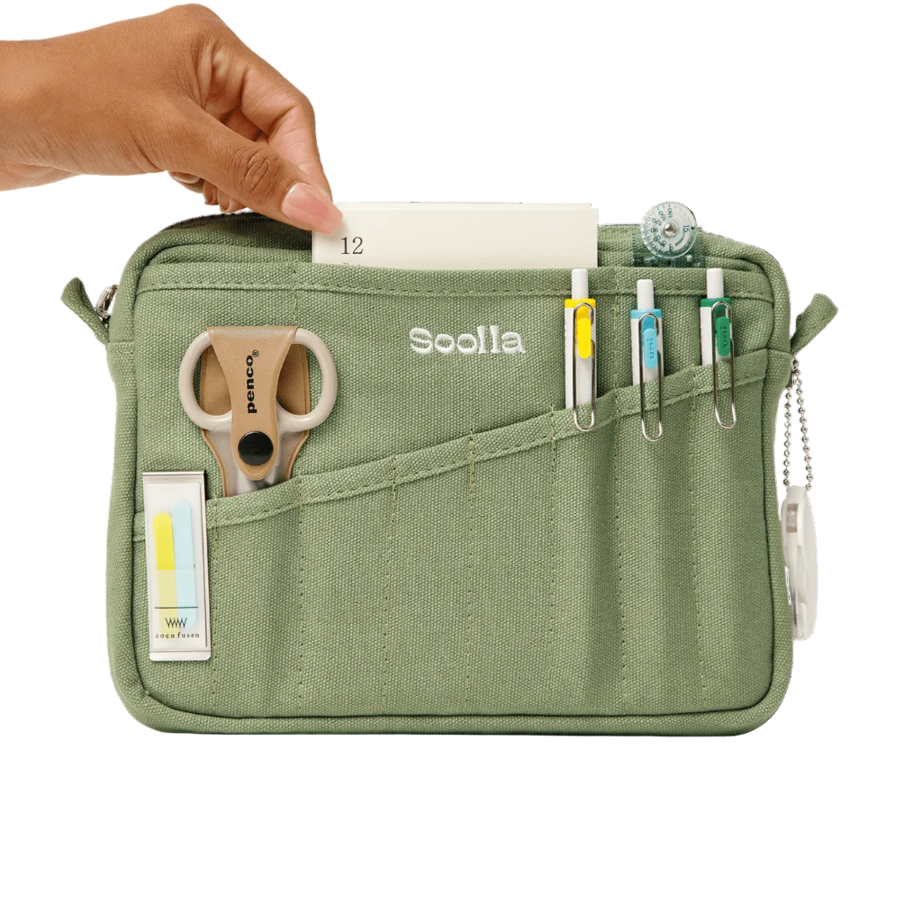 The Soolla Studio Pouch is a compact carry-all pouch for artists, makers, and stationery lovers who appreciate a little order in their chaos. Structured enough to hold its form, soft enough to fit anywhere, and fully machine-washable for the days that get a little messy — your tools, pens, and creative essentials stay safe, visible, and ready wherever you go. All secured by a smooth YKK zipper. Sized to fit within larger bags or carry on its own, it’s organization that moves with you and’s backed by a lifetime warranty and its structured silhouette holds its shape even when light.