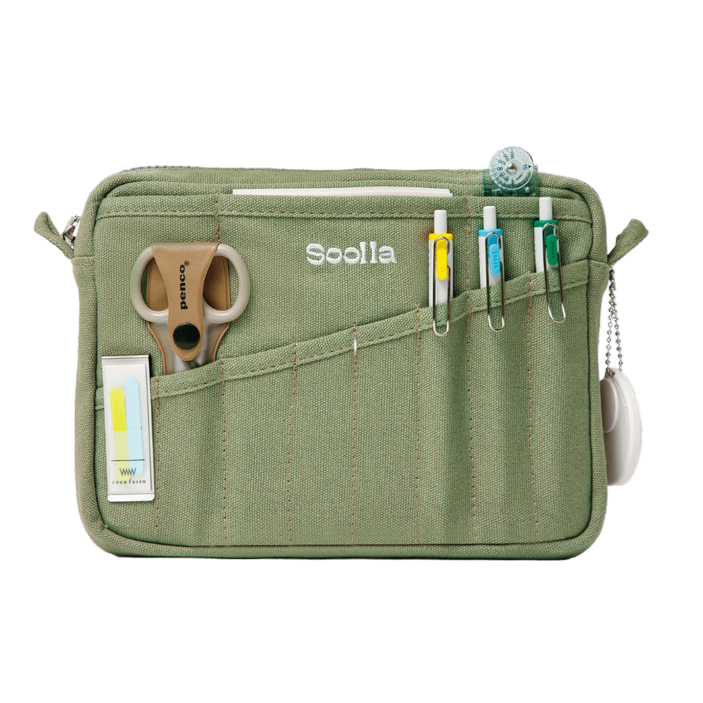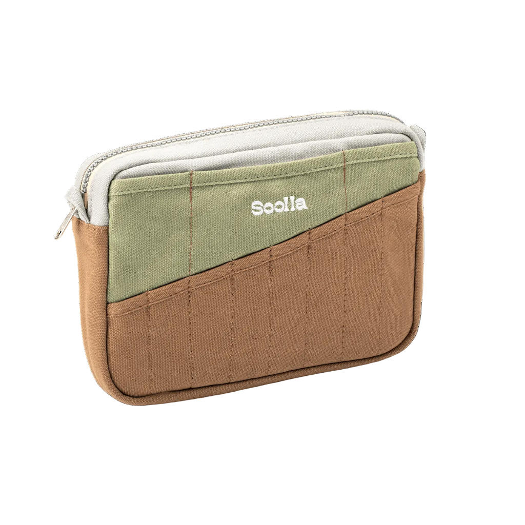 The Soolla Studio Pouch is a compact carry-all pouch for artists, makers, and stationery lovers who appreciate a little order in their chaos. Structured enough to hold its form, soft enough to fit anywhere, and fully machine-washable for the days that get a little messy — your tools, pens, and creative essentials stay safe, visible, and ready wherever you go. All secured by a smooth YKK zipper. Sized to fit within larger bags or carry on its own, it’s organization that moves with you and’s backed by a lifetime warranty and its structured silhouette holds its shape even when light.