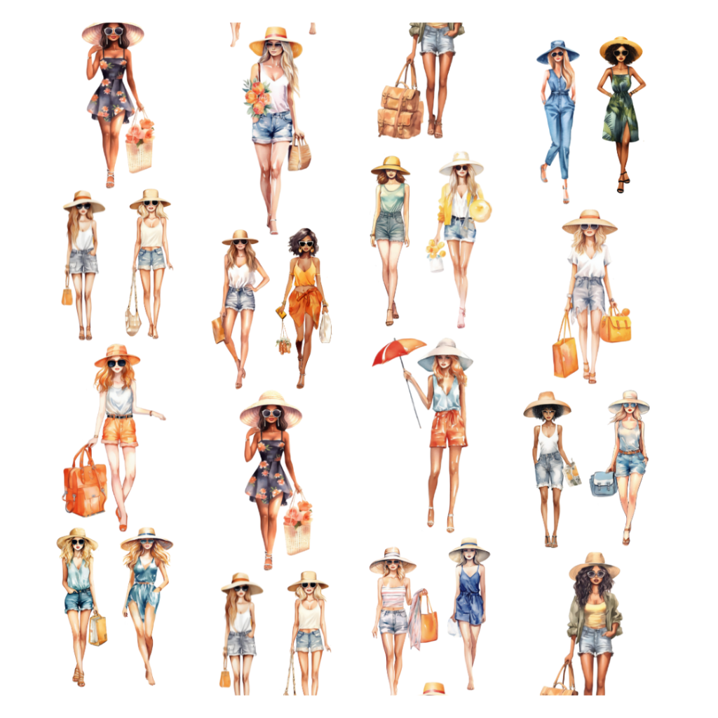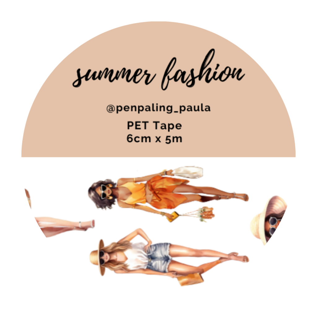This Summer Fashion PET tape from Penpaling Paula features stylish watercolor figures dressed in warm weather outfits with hats, sunglasses, bags, and sandals. The illustrated fashion looks bring a fresh editorial feel to planners, journals, scrapbook spreads, and happy mail. With its larger PET format, it adds eye catching summer details and layered personality to creative pages.