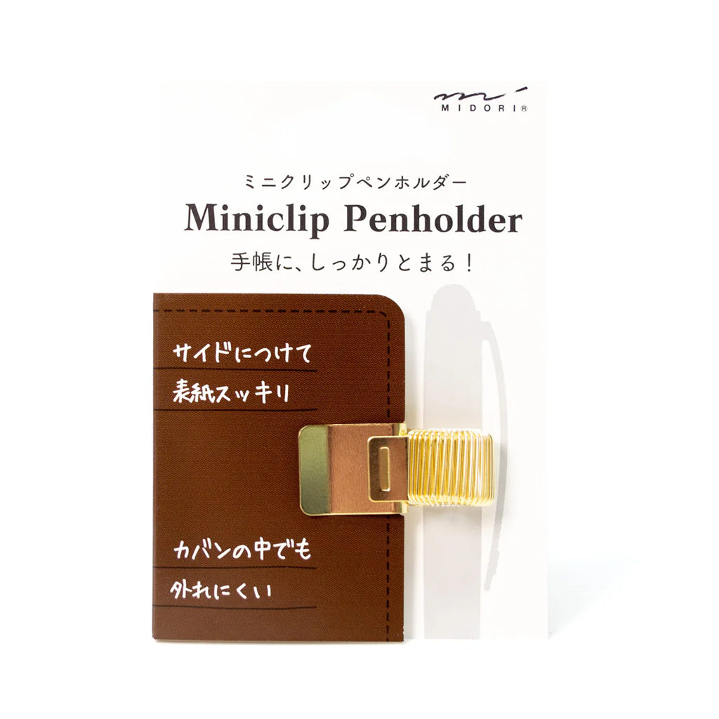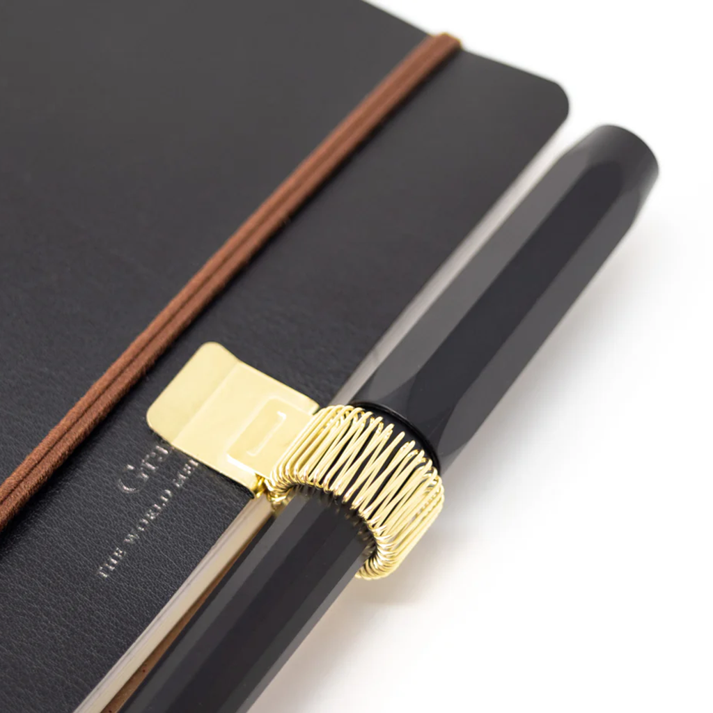 The Midori Miniclip Penholder in Gold offers a refined blend of style and practicality for daily use. Made from sturdy metal, it clips neatly onto a notebook cover, and its springy wire loop adjusts to accommodate pens of various widths. Finished in a soft gold tone, it brings an understated elegance to your notebook setup while keeping your pen close at hand. Ideal for journaling, planning, or sketching on the go, it’s a small accessory that makes writing more effortless.