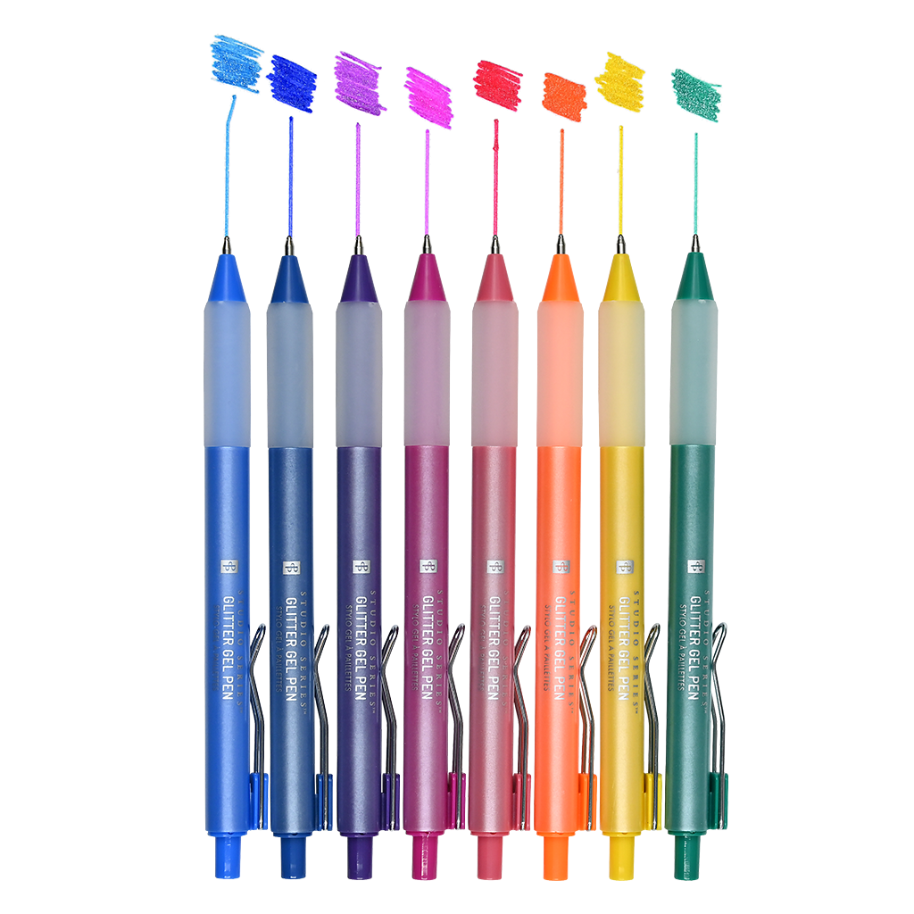 Quick-drying fine-tip gel pens with brilliant glitter colors provide a seamless flow of ink for a flawless writing experience! Retractable gel pens are perfect for journaling, drawing, crafting, and more! Smudge-free. No bleed-through. Choose from a palette of 8 glitter colors to bring pizzazz to all your creative projects in sparkly, vibrant colors that shimmer!