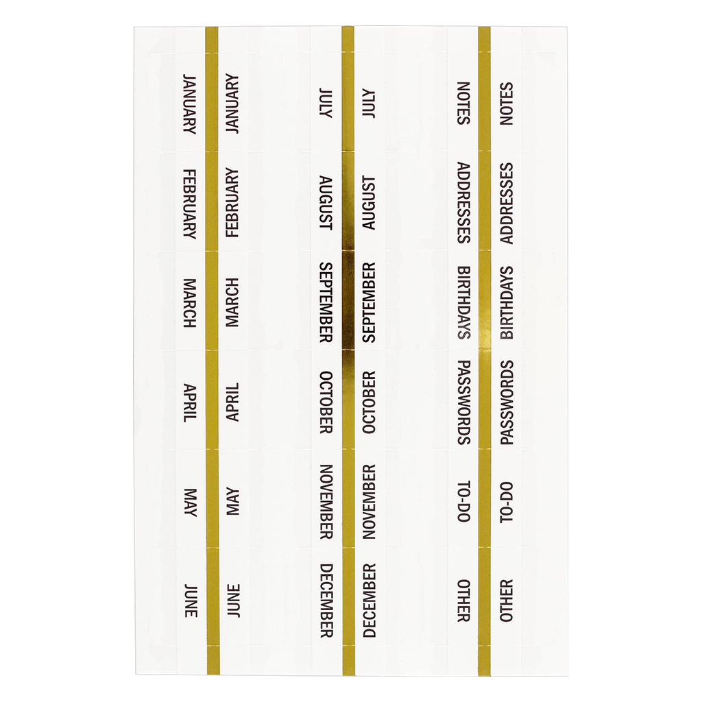 Easy-to-use, functional, self-adhering tabs add organization and style to your planner! Tabs have adhesive on two sides, allowing you to position each along the edges of your planner pages. Set includes tabs for each of 12 months. You'll also find handy tabs for Notes, Addresses, Birthdays, Passwords, To Do, and Other. 18-tab set.
