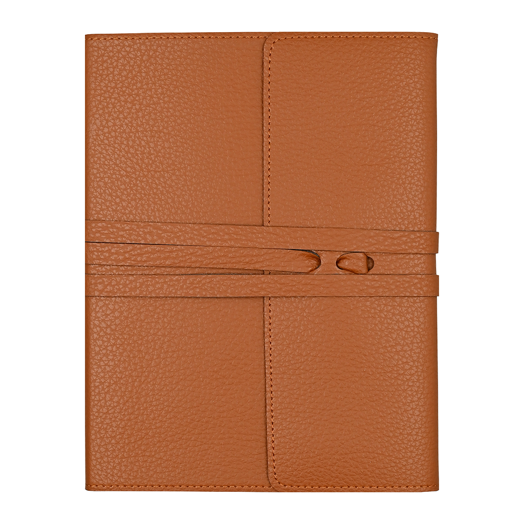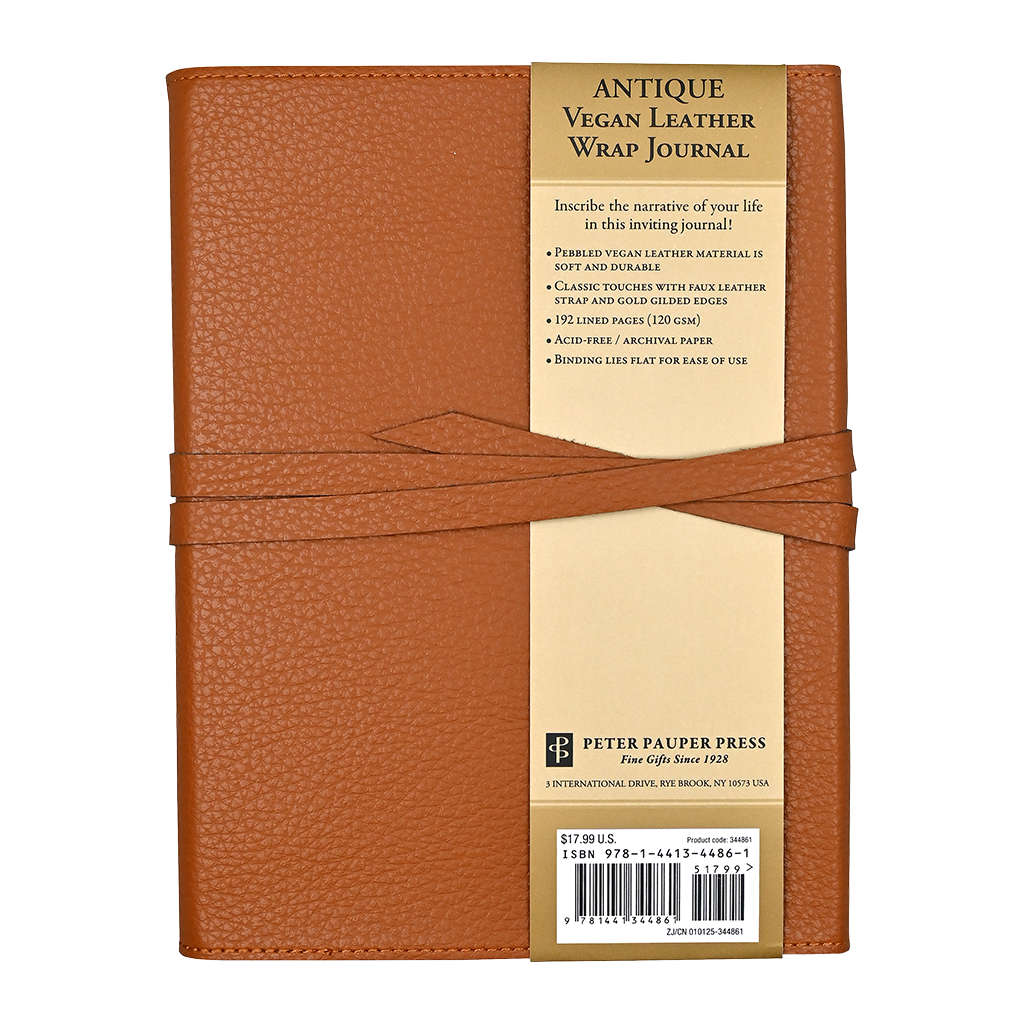 Discover the refined charm of the classic wrap journal, crafted of supple, textured vegan leather. Timeless leather-wrap design is ideal for use as a diary, travel journal, art journal, and more. Inside, crisp, smooth-finish pages invite your personal reflections, sketches, or favorite quotations or poems. Premium quality 120 gsm paper takes pen or pencil beautifully. Light gray lines subtly guide your writing. Sewn-in ribbon bookmark keeps your place.