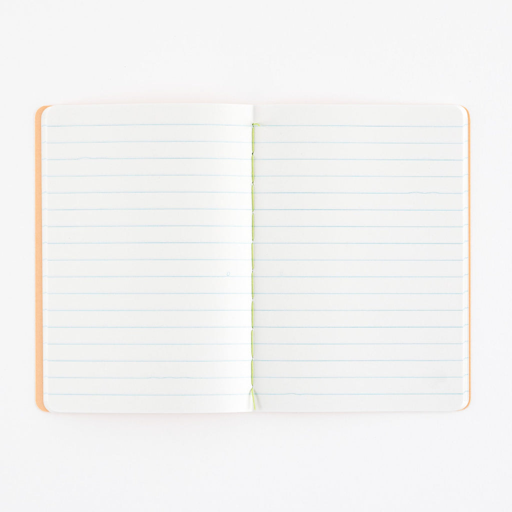 Ce carnet format B7 présente des motifs inspirés des mots de Safety Match. Certaines lignes sont arrondies ou irrégulières, comme si elles étaient écrites à la main. Les lignes sont imprimées en bleu tous les 7 mm, et la couverture est rose saumon pâle.